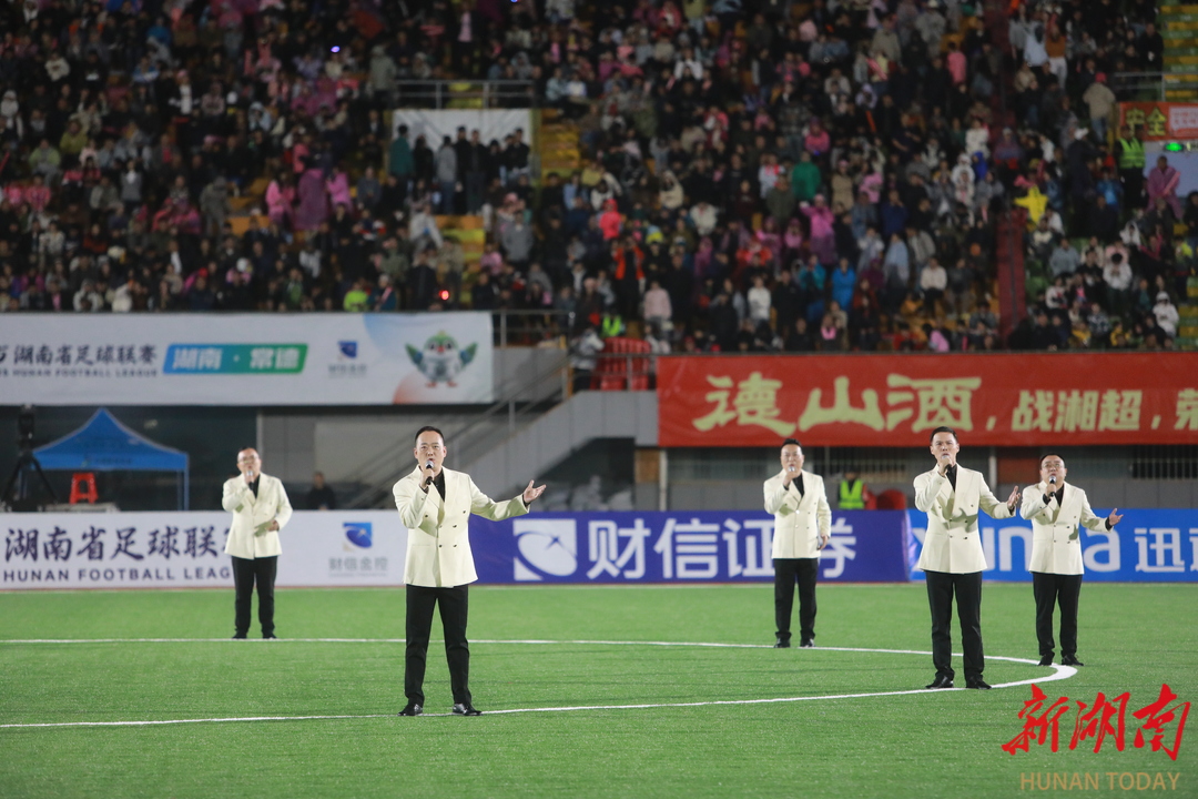 10月18日晚,常德市体育中心,赛前文艺演出精彩纷呈。当晚,湘超联赛第六轮比赛,常德队坐镇主场迎战邵阳队,最终两队2比2握手言和。常马 摄(湖南图片库)