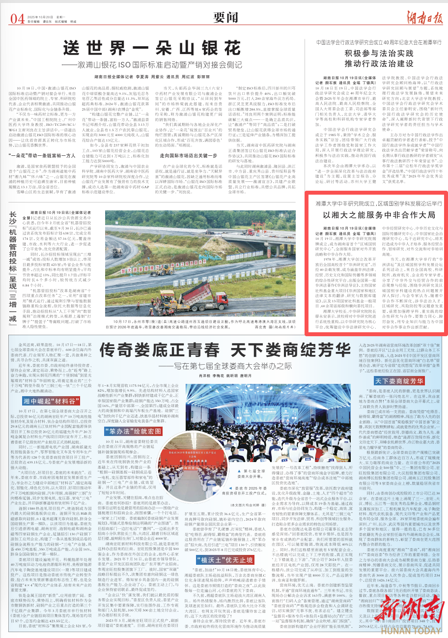 当天,在湘潭大学举行的“非洲讲坛”及区域国别学科发展论坛系列活动上,来自全国高校、科研院所、政府机关、企业的专家学者,分享了中非外交与经贸合作的前沿观察与经验,围绕非洲研究及区域国别学科建设的热点问题展开深入探讨。与会专家认为,随着中非合作不断深化,涉非法治人才、区域研究、风险防控等议题愈发重要,亟需加强跨学科、重实践的综合性研究与合作,要勠力同心、踔厉奋发,用专业知识与能力为中国对非合作事业作出新贡献。