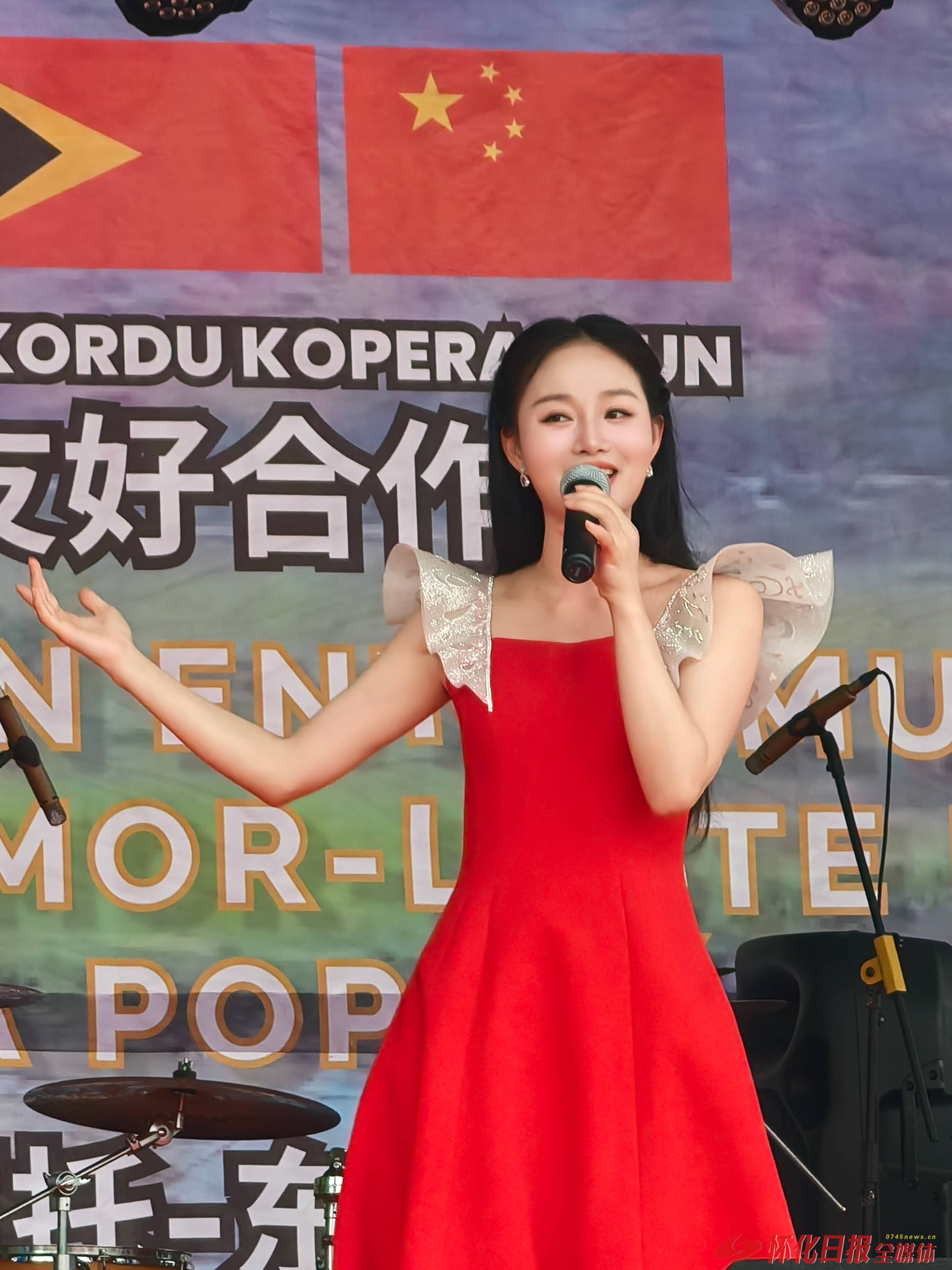 ▲陈香水在东帝汶马纳图托区与湖南省友好交往十周年暨结好五周年活动文艺演出现场