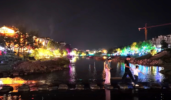 对于本地居民而言,亮化升级后的索溪河岸已成为晚间散步休闲的首选地。百米艺术长廊随音乐变换流光,两岸彩灯缠绕的树木如缀满星光,休闲亭内大人交谈、游步道上孩童嬉闹,昔日“日落而息”的宁静地带,彻底变成了充满生活气息的公共休闲空间。