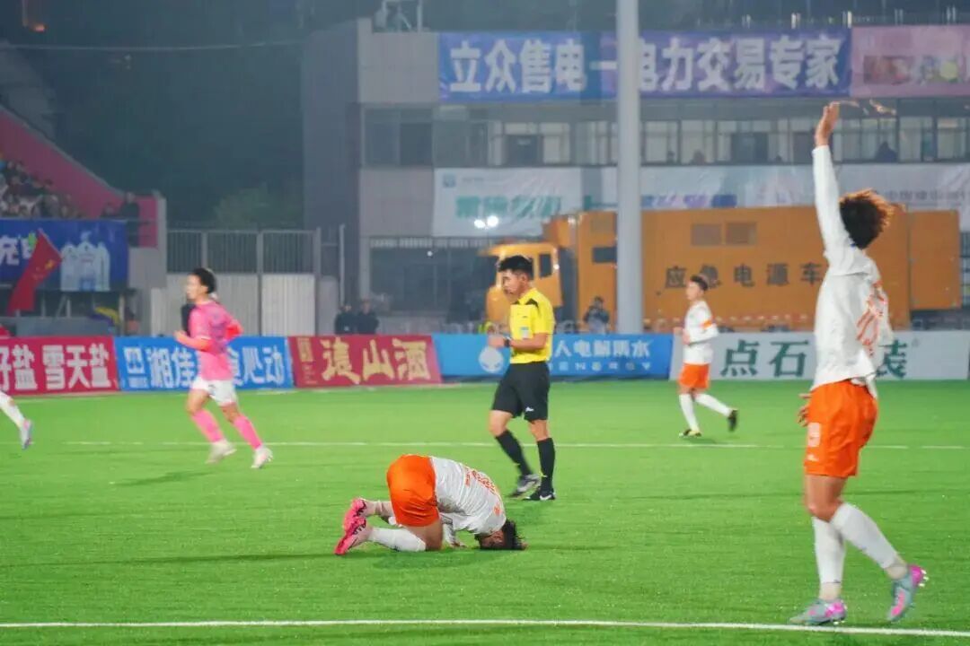 10月18日晚,常德市体育中心,“湘超”常德队主场对阵邵阳队。当补时阶段邵阳队的破门撞入网窝,比分定格在2:2,常德体育中心的客队看台瞬间陷入沸腾——邵阳球迷挥舞着橙色手幅蹦跳相拥,激动落泪,嘶哑的呐喊盖过了雨声。这场未分胜负的平局,却催生出邵阳队比胜利更炽热的欢庆,这看似“奇怪”的狂欢背后,照见了常德队从低调黑马到榜首标杆的蜕变,更书写着球迷对足球最本真的热爱与坚守。