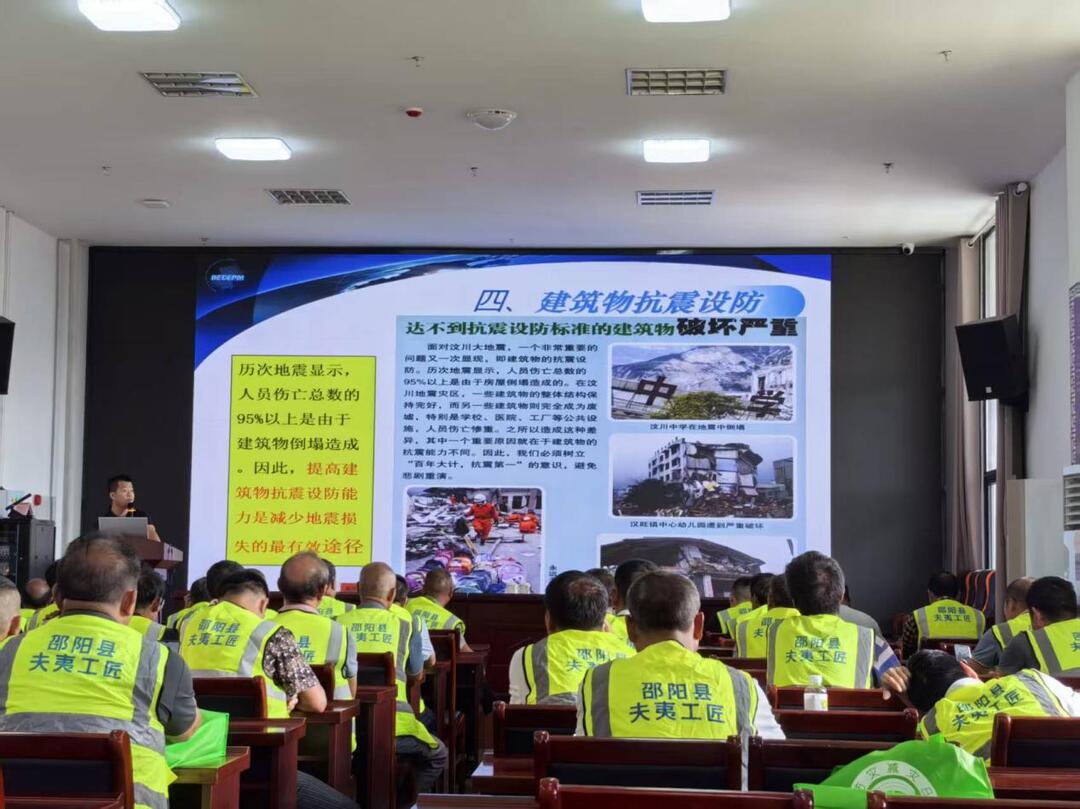 本次培训是落实国家关于提高自然灾害防治能力和加强农村住房建设质量安全管理的具体举措,旨在将科学的抗震防灾理念和技术标准延伸至农村建房“最后一公里”。由邵阳市地震局相关专家授课,153名农村建筑工匠骨干(夫夷工匠)及基层管理人员参训。培训课程紧密结合农村建房实际,内容丰富、注重实效。市地震工程及建筑结构专家围绕《建筑抗震设计规范》农村适用条款、本地抗震设防要求与地震风险形势、农村常见建筑结构类型(砖混、木构、框架等)的抗震薄弱环节分析、抗震构造措施(如圈梁、构造柱的设置与施工要点)、建筑材料选择与质量控制、施工过程中的抗震关键技术以及既有农房抗震加固简易方法等多个方面进行了深入浅出的讲解。
