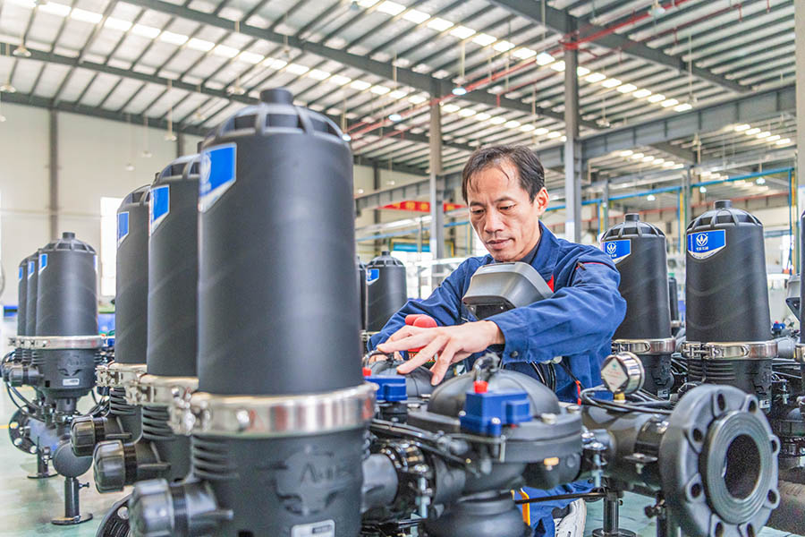 10月20日,东安县华维节水科技装备(湖南)有限公司生产车间,工人在流水线上生产作业。近年来,该县实施工业强县战略,通过数字化转型推动制造业智能化升级,大力扶持制造企业开展生产技术革新和生产设备升级,推动制造业高端化、智能化发展,促进产业转型升级、提质增效。 蔡小平 摄(湖南图片库)
