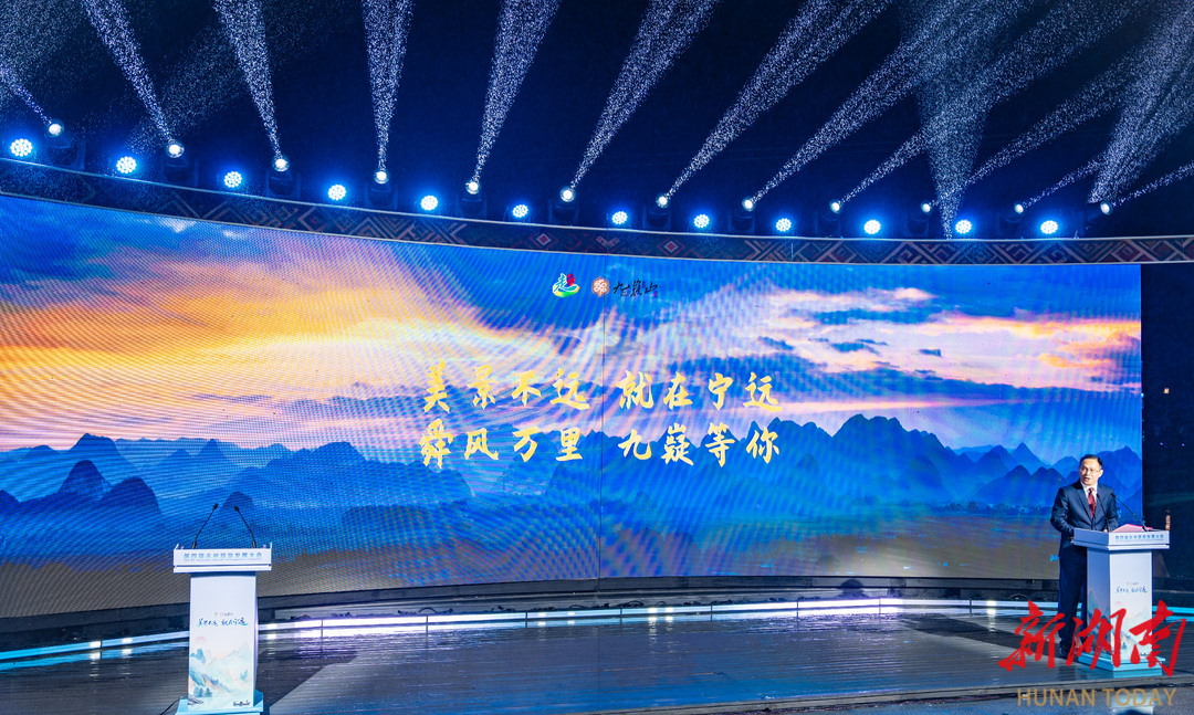大会开幕式以九嶷山水为幕布,将千年文脉融入现代烟火,于天地之间铺展出一幅传统文化与现代潮流完美融合的动人画卷。