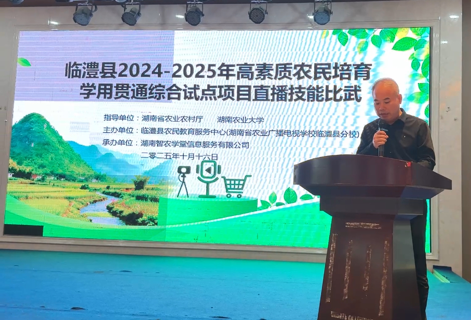 此次实践技能比武由湖南省农业农村厅、湖南农业大学指导,临澧县农民教育服务中心(湖南省农业广播电视学校临澧县分校)主办,湖南智农学堂信息服务有限公司承办。“直播技能比武是10月9日至16日高素质农民培育学用贯通综合试点项目跟踪服务(指导就业创业)的重要一环,既是对为期2年高素质农民培育学用贯通综合试点项目成效的一次集中检验,也是学员就业创业风采的全面展示。”临澧县农民教育服务中心负责人介绍说。试点过程中,该县创新推行“理论 + 实操 + 实战”培育模式,让学员实现从“懂技术” 到 “会经营” 的全面蜕变,能力提升成果可感可及。