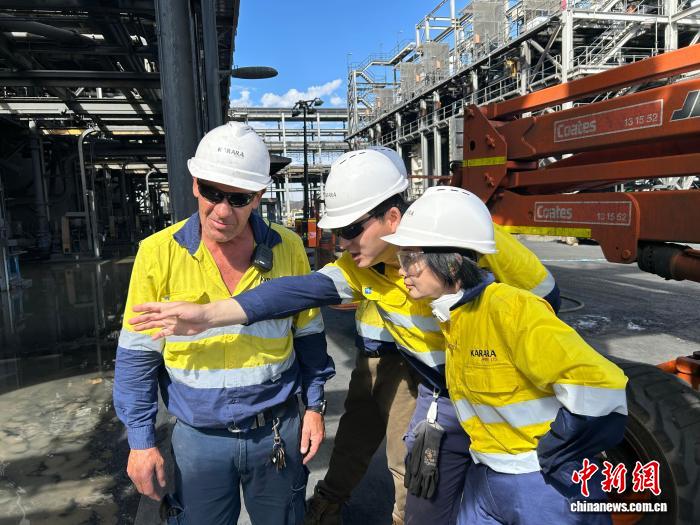 ▲陈雯(右一)在澳大利亚某选矿厂进行技术指导。 受访者供图