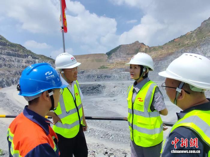 ▲陈雯(右二)在湖南省祁东铁矿调研。 受访者供图