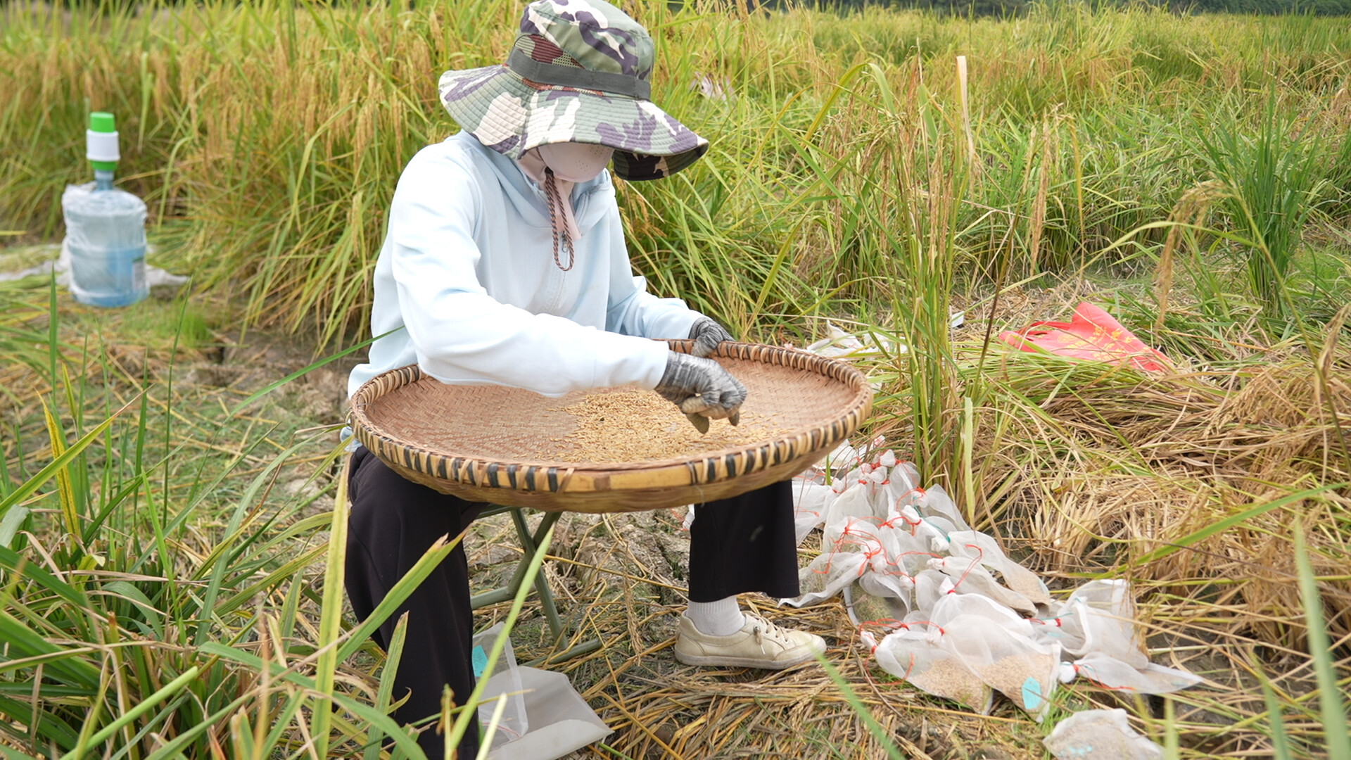 自动化与人工收割两种方式同步开展,既保障了收割效率,又兼顾了特殊区域的作业精度,成为基地丰收季的独特景象。据了解,这片水稻制种基地总面积达120余亩,是当地重要的水稻科研育种阵地,培育的水稻品种多达7000个左右,涵盖了不同“世代”、不同类型的水稻种质资源,为水稻品种改良与创新提供了丰富的“基因库”。