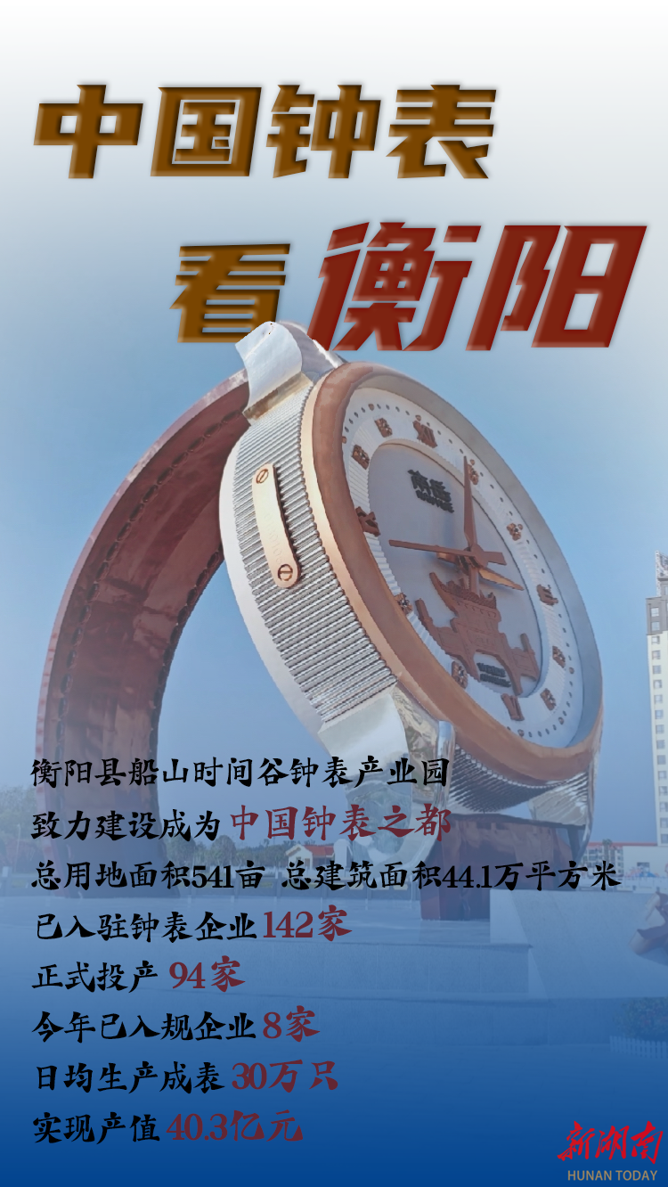 衡阳钟表产业底蕴深厚,从“五一”钟表社到“南岳”牌手表,再到如今全力打造的船山时间谷钟表产业园,实现了历史传承与创新发展的融合。该产业园是全国首个集钟表研发、生产、销售、文化旅游博览于一体的钟表全产业链项目,已集聚钟表上下游企业142家,日均生产成表能力达30万只,2025年产值实现40.3亿元,带动就业3500余人。“边建设、边招商、同步投产”的模式活力尽显,“世界钟表看中国,中国钟表看衡阳”的愿景正逐步成为现实。