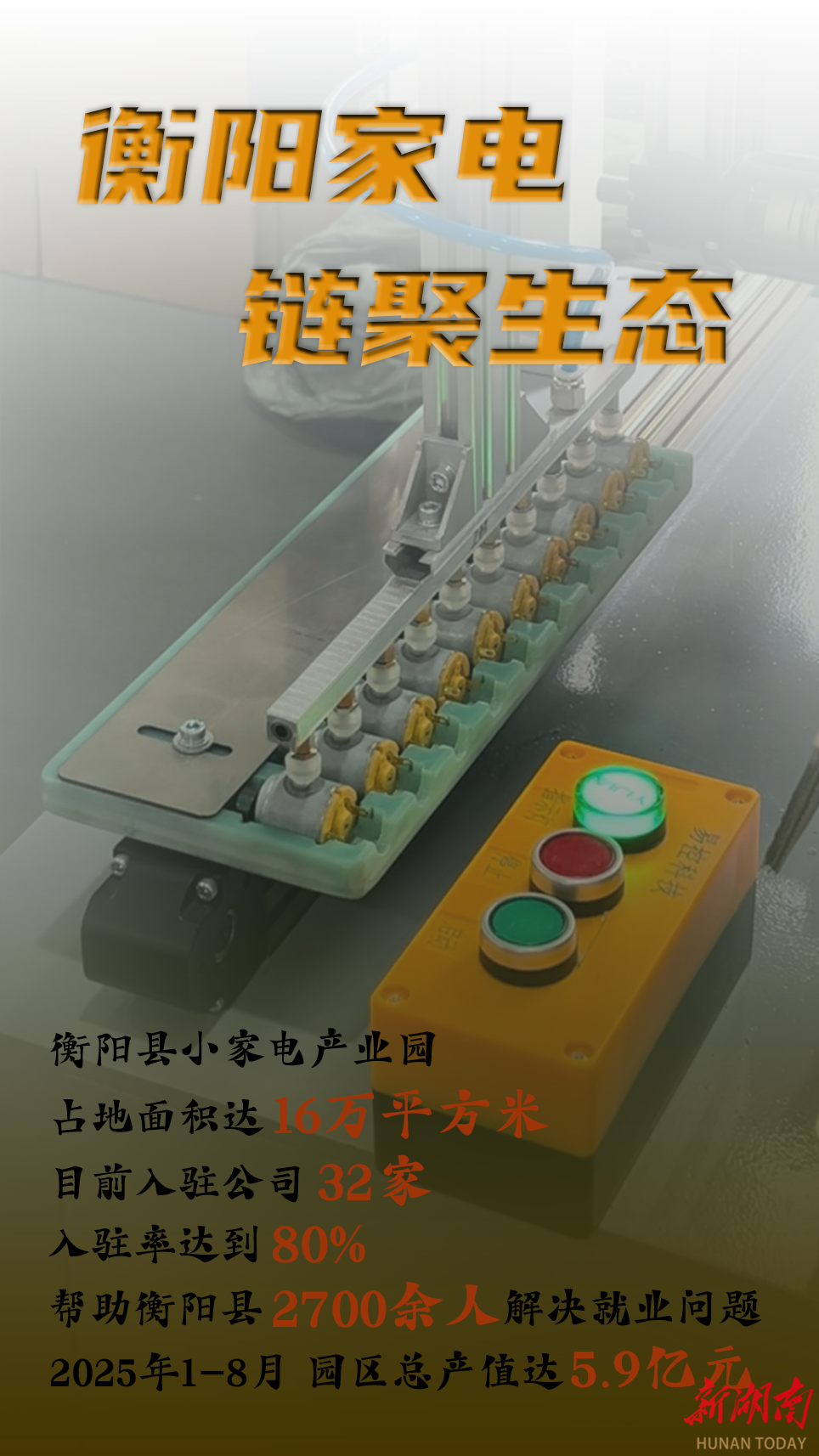 衡阳县小家电产业园已吸引32家产业链企业集聚,产品涵盖上百种日用小家电,为当地提供2700多个就业岗位。金马力微型电机有限公司董事长黄春凯正是被家乡优质的营商环境所吸引,从东莞返乡创业。他亲历的“衡阳县速度”令人惊叹:从签约到完成所有手续仅用4小时,到正式投产不过月余。这样高效的政务服务和有力的政策支持,不仅为企业快速落地投产提供了坚实保障,更形成了强大的“归雁效应”,吸引着越来越多在外打拼的企业家“凤还巢”。