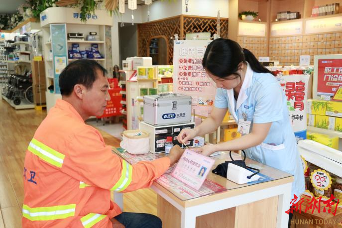 在老百姓大药房长沙万家丽店,记者看到“免费使用微波炉、休息座椅、免费茶水、手机应急充电、免费自测体温/血压、免费清创处理”的“爱心驿站”标识格外醒目,不时有环卫工人、外卖小哥过来歇脚、喝水。外卖小哥陈祥一边给手机充电一边抢单,他赞不绝口:“抢单最怕手机没电,这里能免费充电,还能免费灌茶水、热饭,对我们来说是实实在在的便利。”