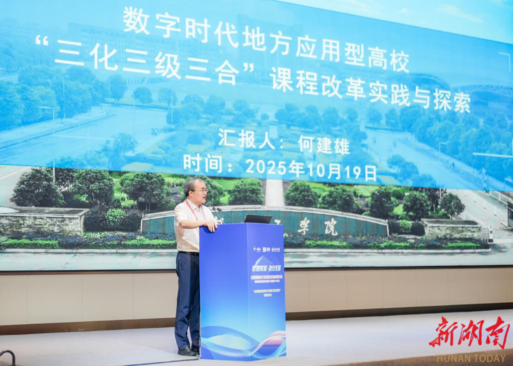 湖南日报·新湖南客户端10月21日讯(通讯员 王芳芳 李琪)10月17至19日,湖南工学院党委副书记何建雄应邀出席“数智赋能·融合发展:全面建强地方应用型本科高校”研讨会暨23联盟2025年会,并作《数字时代地方应用型高校“三化三级三合”课程改革实践与探索》学术报告,受到与会专家学者的一致好评。