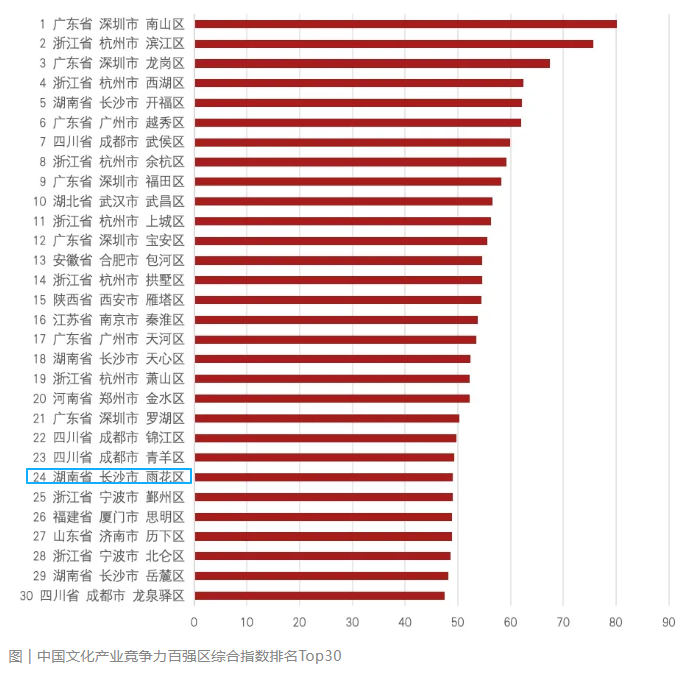 中国文化产业竞争力百强区指数由中国人民大学文化产业研究院研发,指数体系由产业“生产力、影响力、驱动力”构成。雨花区能够争先进位是文化产业竞逐数字经济新赛道的创新实践,也是创新体制机制,推进文化产业与其他产业深度融合发展的显著成效。2024年全区规模以上文化及相关产业营收达109.8亿元,同比增长12.3%。2025年上半年全区文化产业单位营收52.87亿元 ,同比增长13.1%,居全市前列。