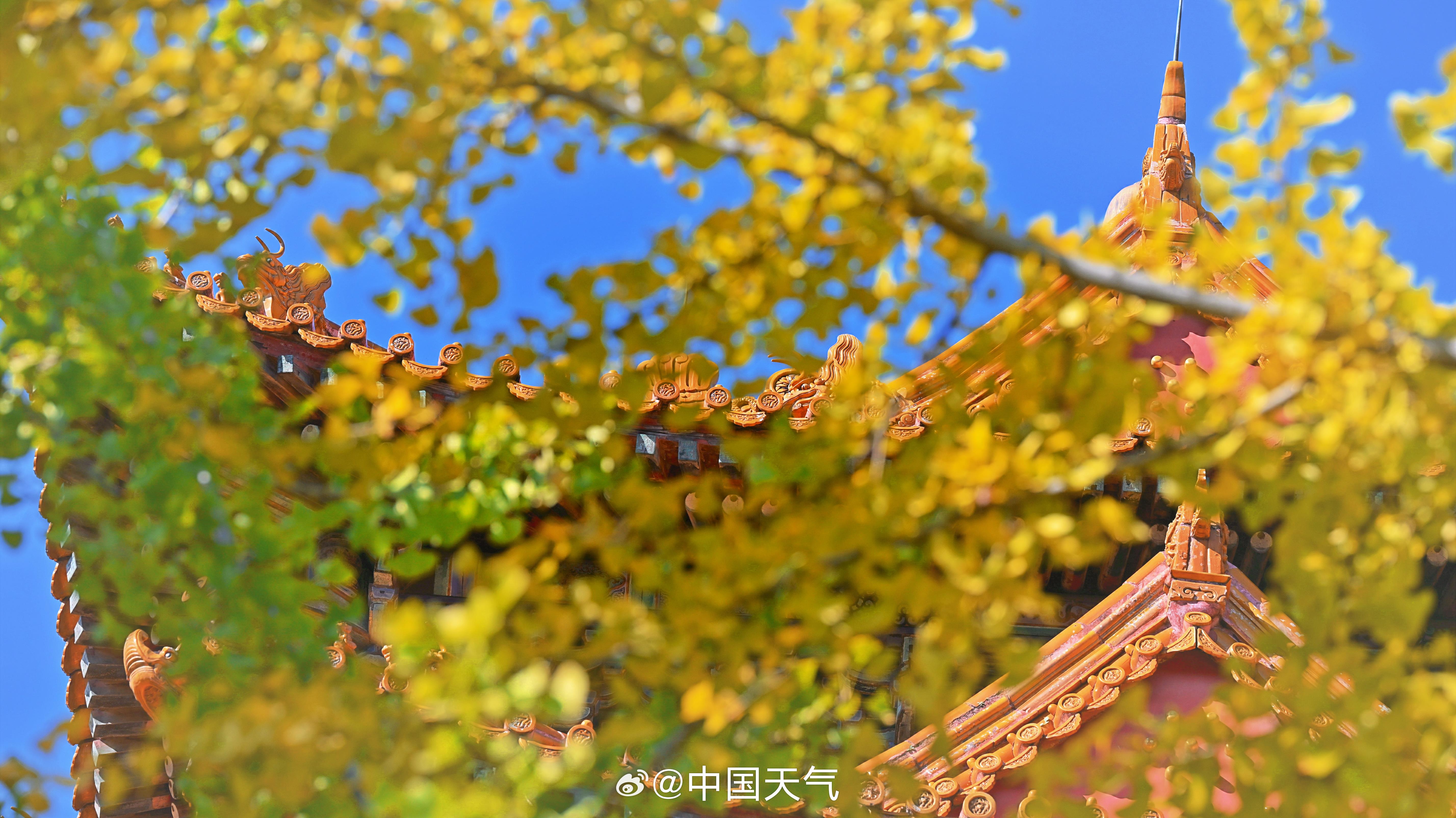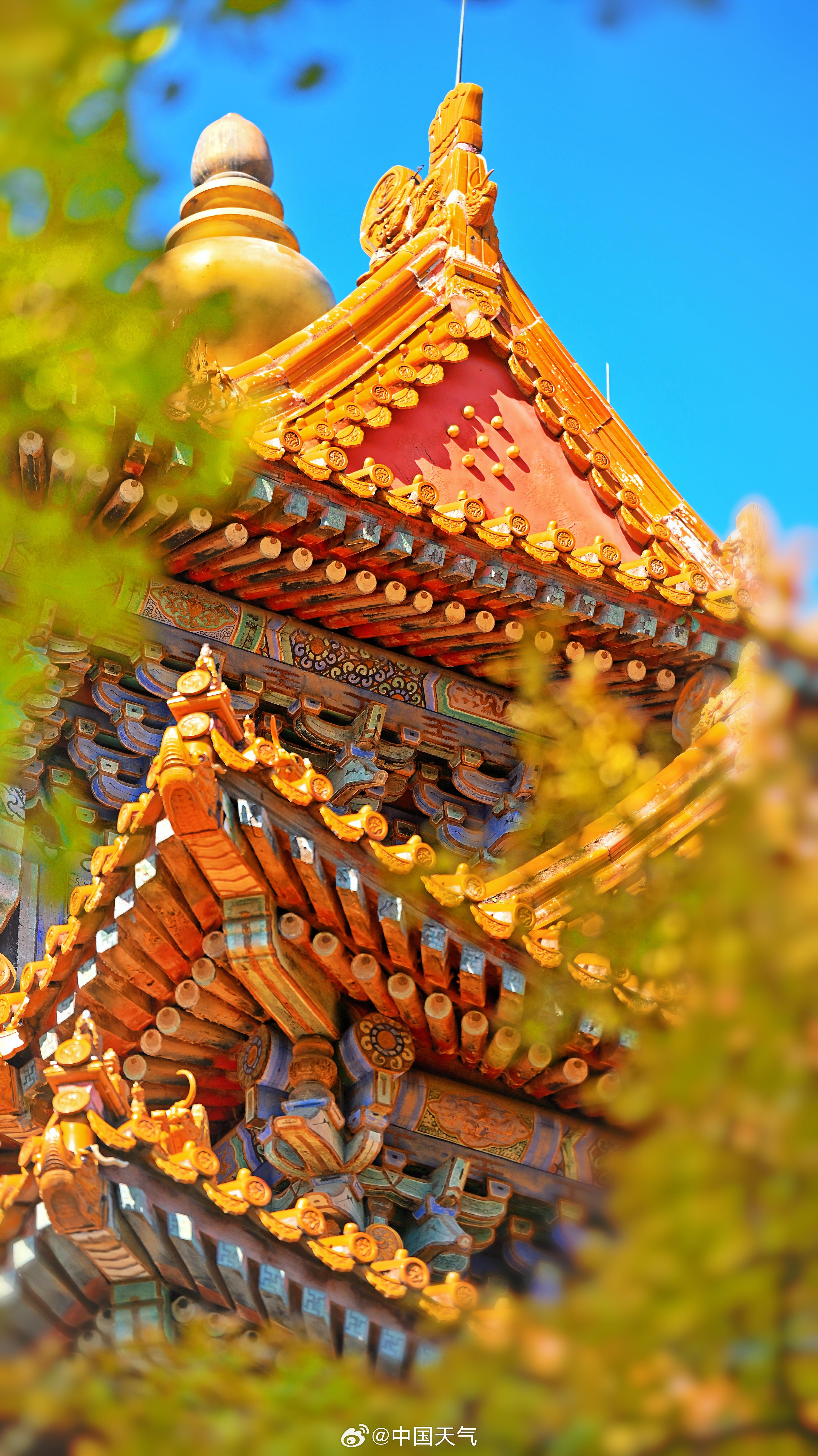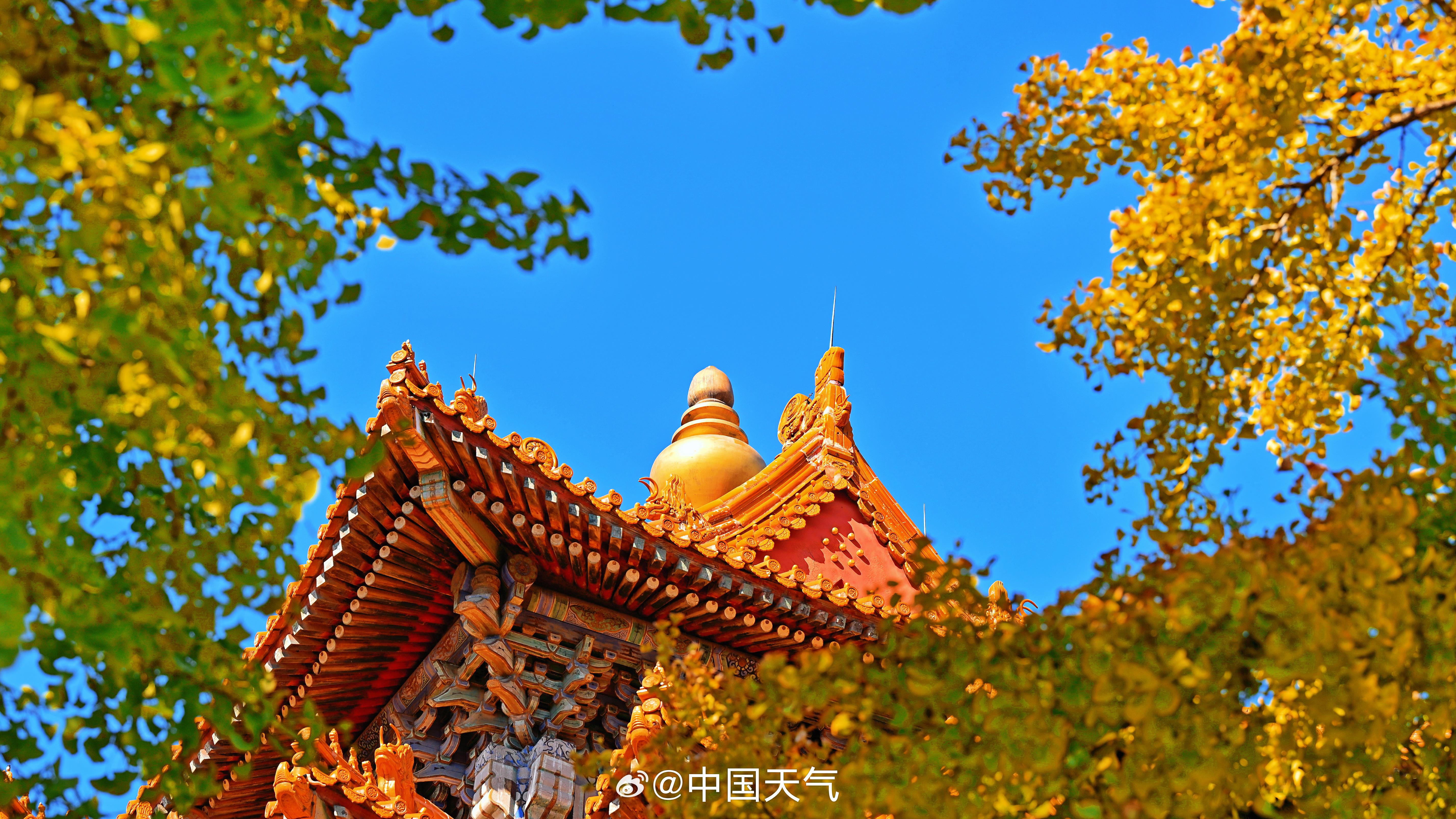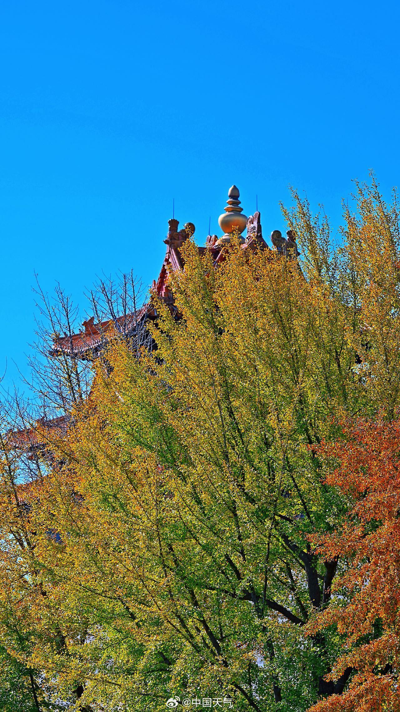 今天(21日),北京天空湛蓝纯净,故宫角楼的飞檐翘角与秋叶相得益彰,尽显古典之美。