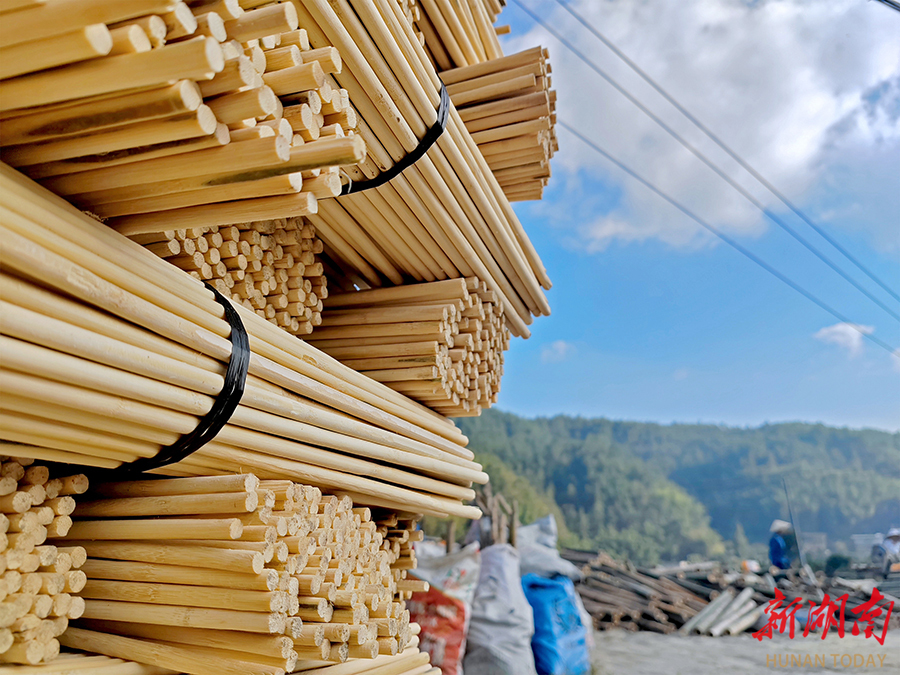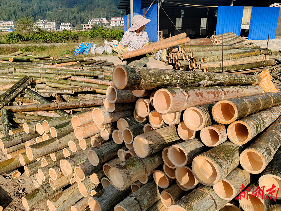 10月21日,桂东县沤江镇马坊村楠竹加工厂,村民忙着加工楠竹。该厂通过引进湘潭企业,建立产销直供渠道,带动本地村民就业,以特色产业助力乡村振兴,实现农民增收与产业发展双赢。 邓仁湘 摄(湖南图片库)