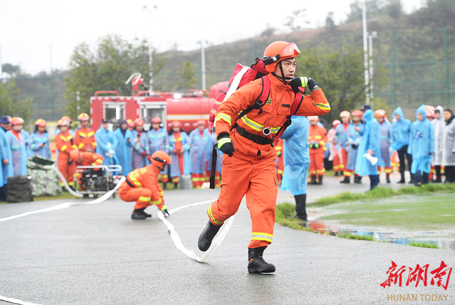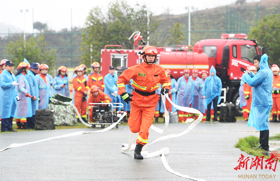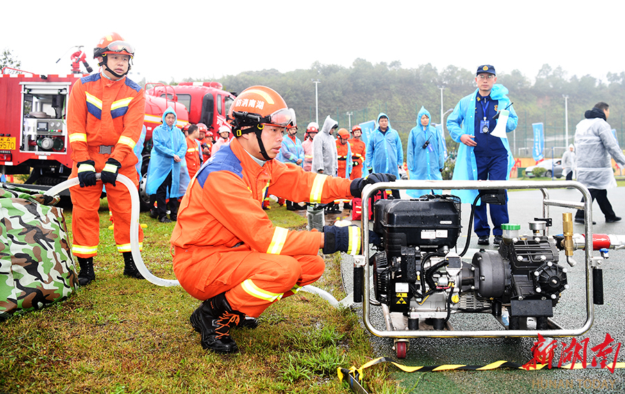10月21日,参赛选手在进行单泵架设与撤收比赛。当天,长沙市首届乡镇应急能力比武在望城区启动。来自9个区县(市)的基层应急救援队伍,围绕理论测试、体能竞赛和专业技能实操三大类6个科目展开角逐。活动通过单泵架设等实战化项目,全面检验队员的专业素养和团队协作能力,推动基层应急力量标准化建设。 湖南日报全媒体记者 田超 李治 摄影报道
