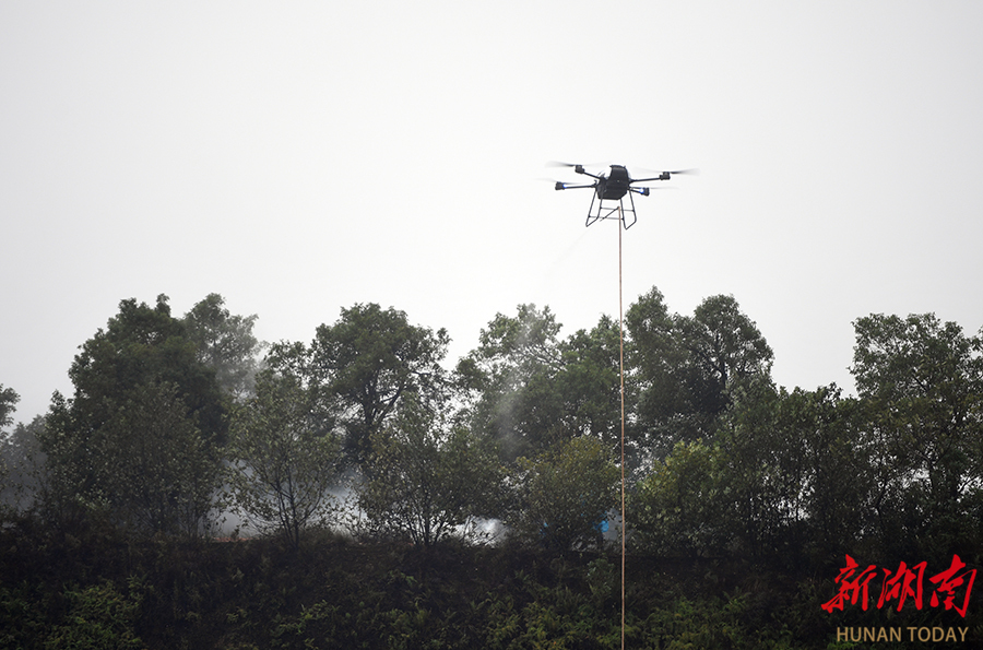 10月21日,无人机在进行森林灭火演练。当天,长沙市首届乡镇应急能力比武在望城区启动。来自9个区县(市)的基层应急救援队伍,围绕理论测试、体能竞赛和专业技能实操三大类6个科目展开角逐。活动通过单泵架设等实战化项目,全面检验队员的专业素养和团队协作能力,推动基层应急力量标准化建设。 湖南日报全媒体记者 田超 李治 摄影报道
