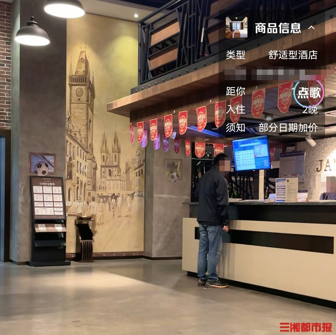 10月21日,在长沙一酒店直播间内,网友可看到正在前台咨询的消费者。