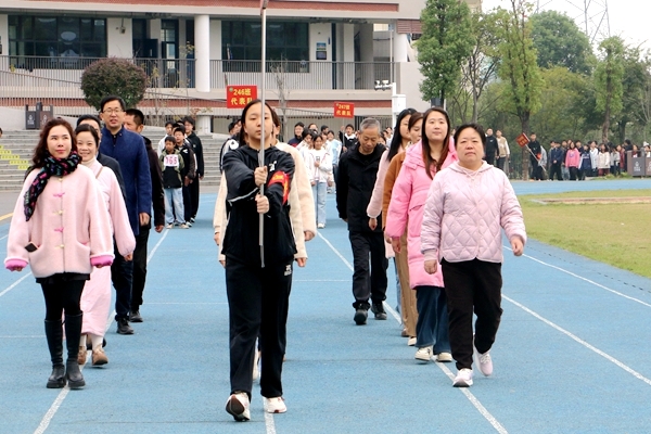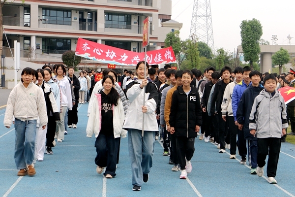 方阵队表演结束后,国旗护卫队护送着国旗走向升旗台,随着国歌奏响,五星红旗冉冉升上天空。随后,活力四射的运动健儿们开始在操场上奔跑,呼喊声、鼓励声络绎不绝,让寂静的校园开始沸腾……(张小玲)