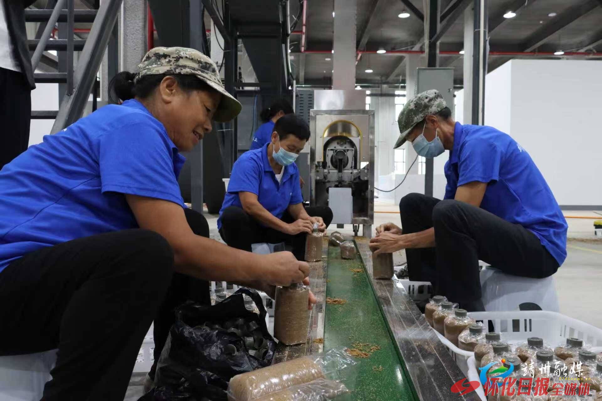(工人使用数控装袋机制作茯苓菌种。许梦娟 摄)