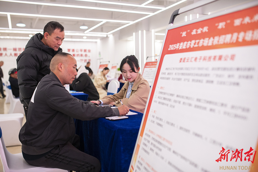 10月22日,娄底市零工市场,求职者在登记个人信息。当天,2025年娄底市零工市场金秋招聘月专场招聘会举行。本次活动重点面向登记失业人员、退役军人及进城务工人员,共吸引16家企业参与。现场为零工求职者提供了政策咨询、职业指导、信息发布等“一站式”服务,促进灵活就业人员精准就业。吴永华 梁杰 摄影报道(湖南图片库)