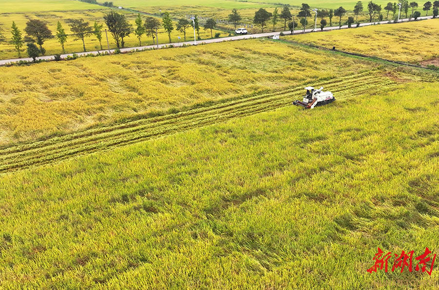 10月22日,洞口县花古街道七里村,农机手驾驶收割机收割晚稻。随着霜降节气临近,当地农户正加紧开展秋收秋种等农事活动,田间地头一派繁忙景象,为冬季农业生产奠定基础。 滕治中 摄(湖南图片库)