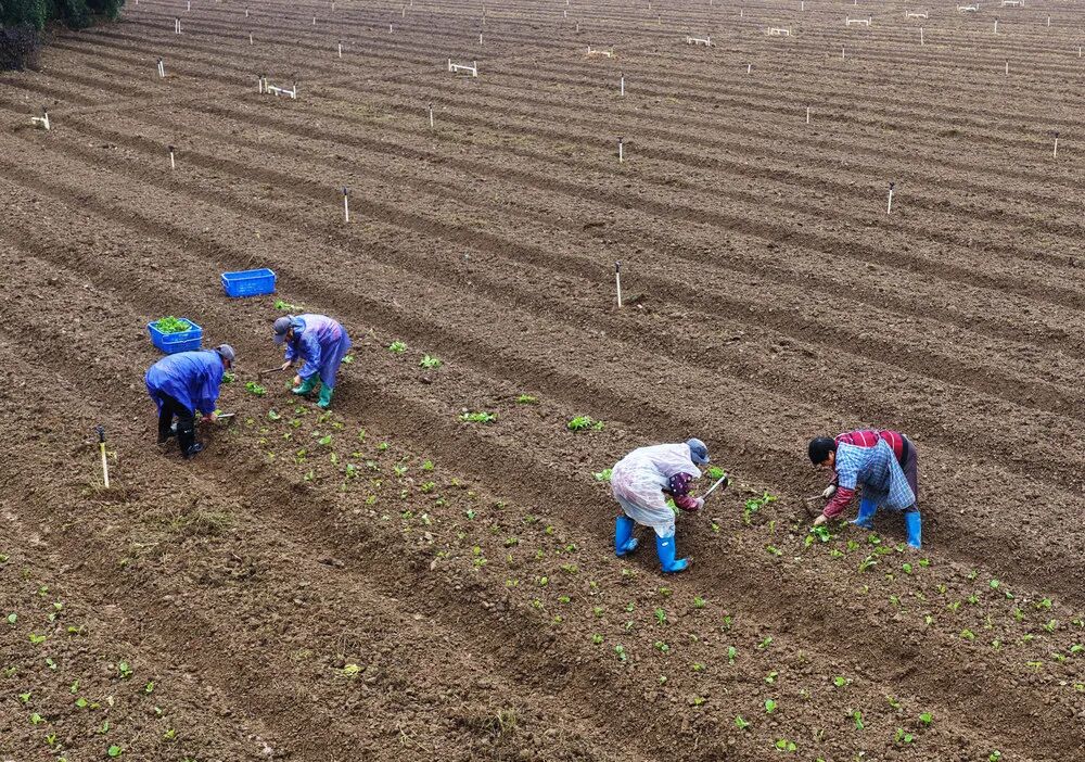 10月23日,吉首市乾州街道西门口村,村民们为白菜除草施肥。梁永鸿 摄
