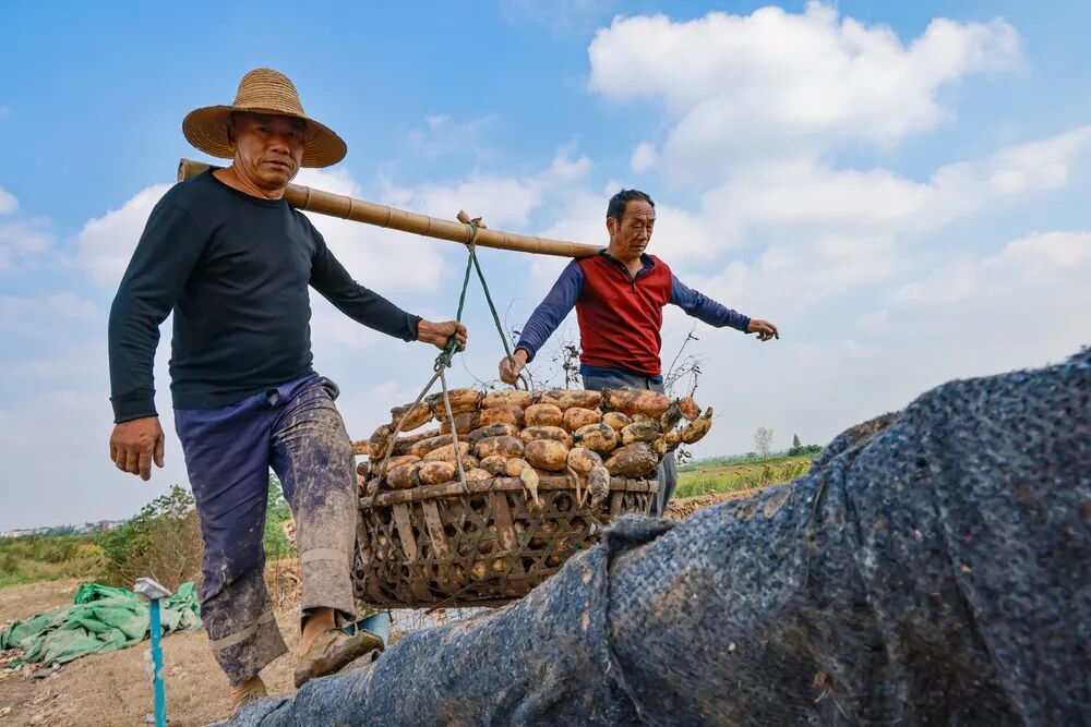 10月22日,南县乌嘴乡又东村700余亩莲藕迎丰收,村民抓紧采收。肖乐峰 摄