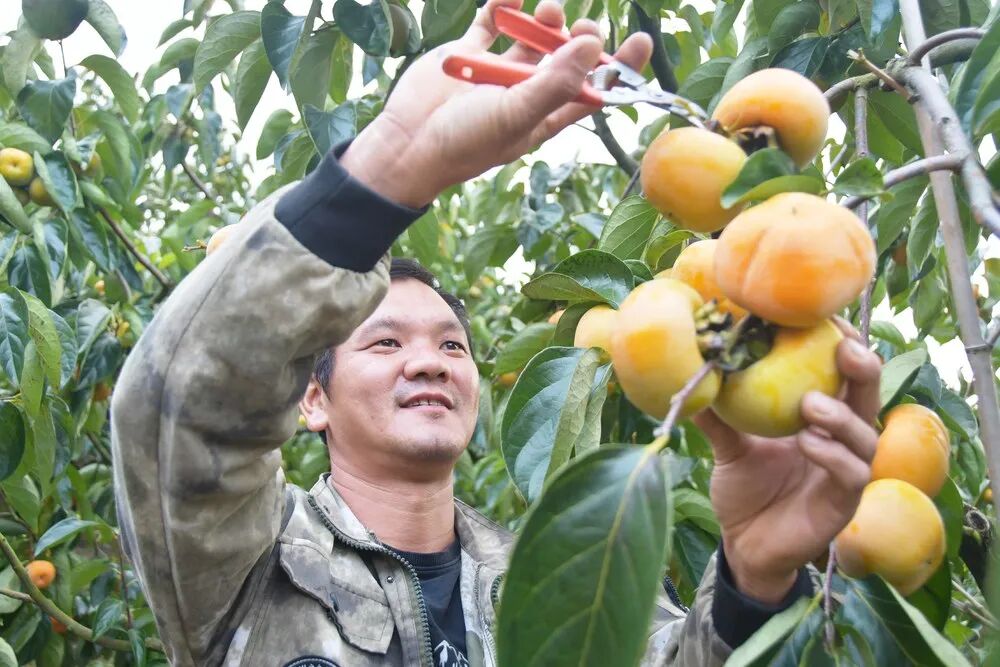 大自然也展现出层林尽染的深秋画卷:登高远眺,银杏泛黄;柿子高挂枝头,点缀山坡,寓意“心想‘柿’成”。