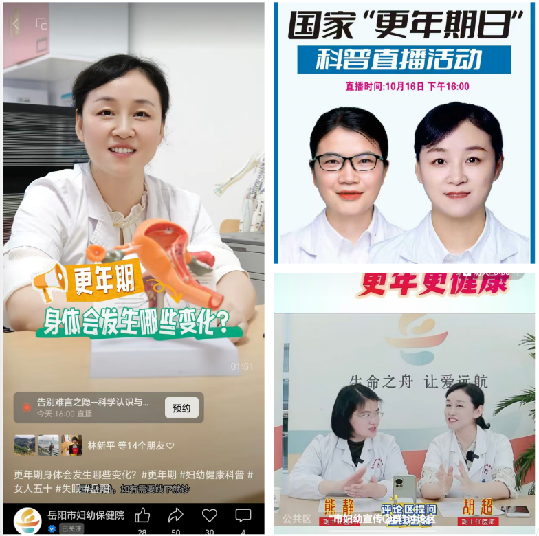 在岳阳市妇幼保健院科普直播间,更年期保健特色专科门诊胡超副主任医师联合中医妇科熊静副主任医师,从中西医角度全方位介绍更年期的相关知识。当中西医“强强联合”,西医的精准干预与中医的整体调护相辅相成,既能快速缓解更年期急性症状,又能长期调理身体内环境,帮助女性在更年期阶段实现“症状轻、身心稳、健康久”的目标,真正做到“优雅跨越,健康相伴”。