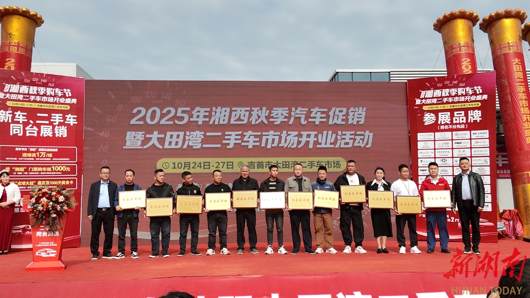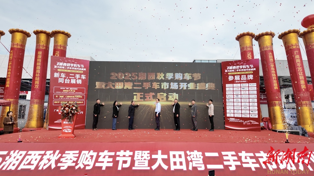 湖南日报·新湖南客户端10月24日讯(全媒体记者 李菁菁 通讯员 李文胜)今天,2025年湘西秋季汽车促销活动,在湘西土家族苗族自治州吉首市大田湾二手车市场启动。本次活动以“乐享消费·智驾生活”为主题,由湘西州商务局指导,州汽车商会与吉首市二手车行业协会共同组织,共同推动消费升级。