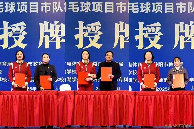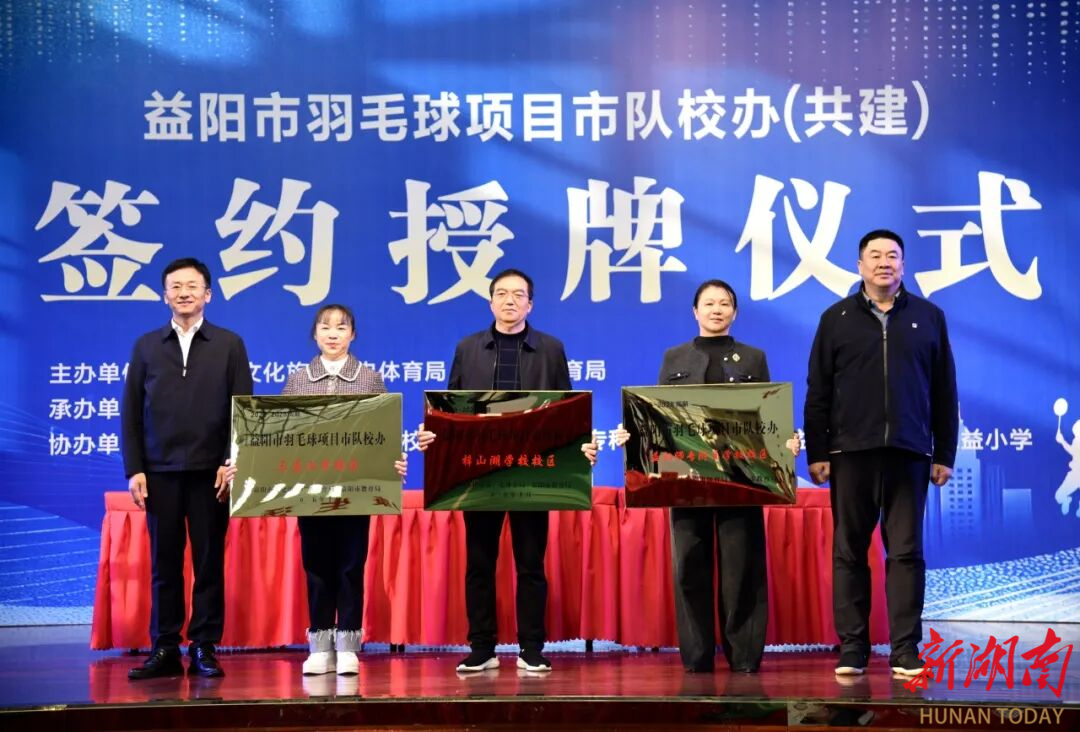 益阳市羽毛球运动学校分别与益阳师范高等专科学校附属学校、赫山区梓山湖学校、资阳区三益小学签订羽毛球项目市队校办(共建)协议。市文旅广体局、市教育局联合向上述3所普通学校授予“益阳市羽毛球项目市队校办”牌匾。