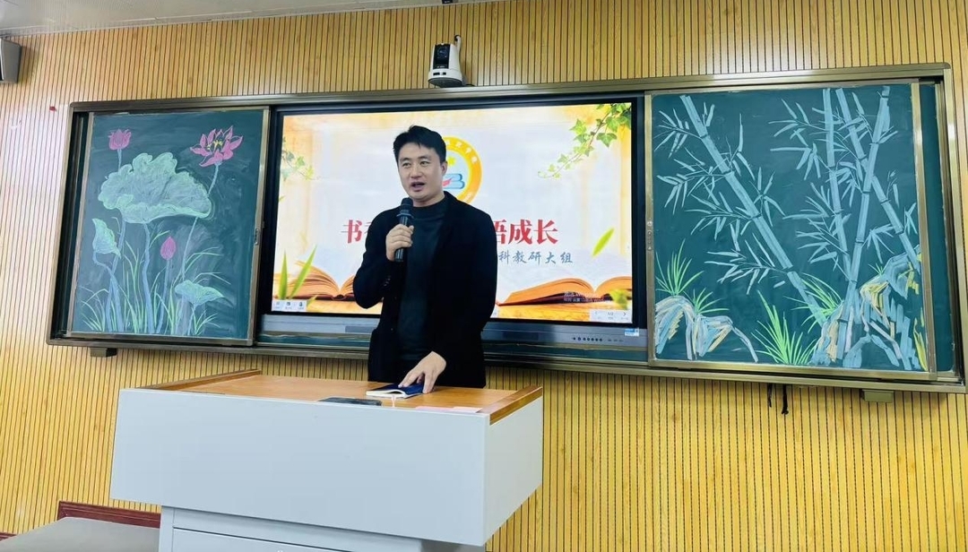活动分为语文、数学和综合科三个专场,全校教师以书为媒,共话教育。活动采用“电脑抽签”的方式,随机选取教师上台分享,确保了过程的公平性与参与的全员性。在语文专场的分享中,老师们围绕《额尔古纳河右岸》《给语文老师的新建议》《于永正:我如何教语文》等共读书目,结合教学实践,畅谈阅读感悟。潘宇老师提出语文教学是“生活的加减乘除”,陈闺臣老师将教学比作“农业的艺术”,强调“眼中有‘人’,心中有爱”。邹莎老师的一句“语文老师不是‘教语文’,而是学生与世界的‘摆渡人’”,道出了语文教育的温度与深度。
