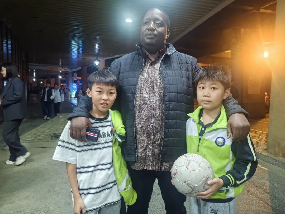 埃里克·穆内内与两万余名观众共同沉浸在比赛的激情中。“在我的家乡,很少能见到如此规模又井然有序的全民体育盛况。”让他格外惊喜的是赛后的一段温馨插曲:两位身着郴州队球衣的小球迷主动与他击掌,并大胆地用英文说“Welcome to Chenzhou!”埃里克·穆内内开心地与小球迷合影,并用刚学会的中文喊出“郴州,加油!”——足球在这一刻跨越国界,友谊在笑声中传递。