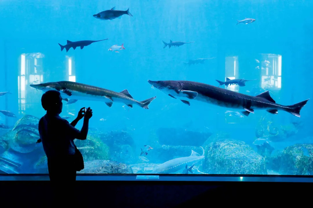 江西九江市湖口县,长江鄱阳湖水生生物保护中心淡水鱼类展示馆内展示的鲟鱼、胭脂鱼、金吉罗、射水鱼等百余种鱼类。图/新华下半程任务仍然艰巨