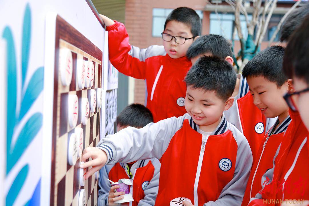 同样让每一寸空间都“活”起来的还有雨花实验小学。雨花实验小学教育集团总校长、雨花实验小学党支部书记万淑兰介绍:“我们深入调研学生的兴趣点,再将其转化为校园里的微课程。”学校通过地面、墙面、桌面的“三面联动”,精心设计了磁铁象棋、积木拼图等11款墙面游戏,安装了67个高度各异的摸高器,使学生人均体育活动面积从不足5.5平方米大幅提升至9.8平方米。