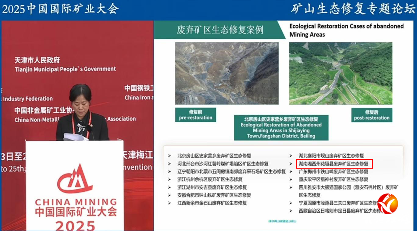 湖南日报·新湖南客户端10月27日讯(通讯员 田海峰)近日,第二十七届中国国际矿业大会“矿山生态修复专题论坛”在天津举行。会上,自然资源部发布了矿山生态修复典型案例,花垣历史遗留矿山生态修复成功入选并获推荐。