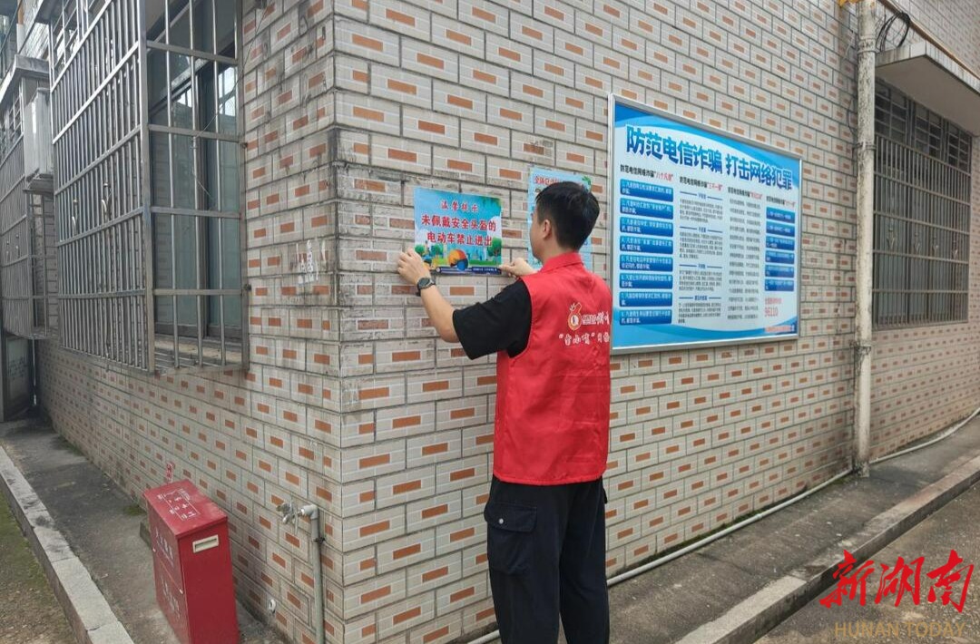 雷锋路社区“雷小哨”网格员冯豪栋张贴安全提示