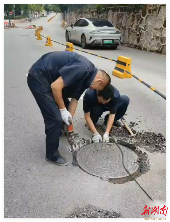社区组织物业公司、业主代表召开“同心堂”专题协商议事会,最终达成共识,由社区牵头,通过惠民项目协调专业维修队伍施工。针对变形、老化的井盖,进行整体拆除和更换;轻微异响的井盖,采取垫胶圈、水泥封边、井圈胶布固定等方式让井盖“静音”,并由居民代表全程参与监督。方案确定后,施工队迅速进场,在“三考”前顺利完成三期1栋、3栋、4栋环形道路松动井盖的整改,消除了井盖噪音扰民问题。