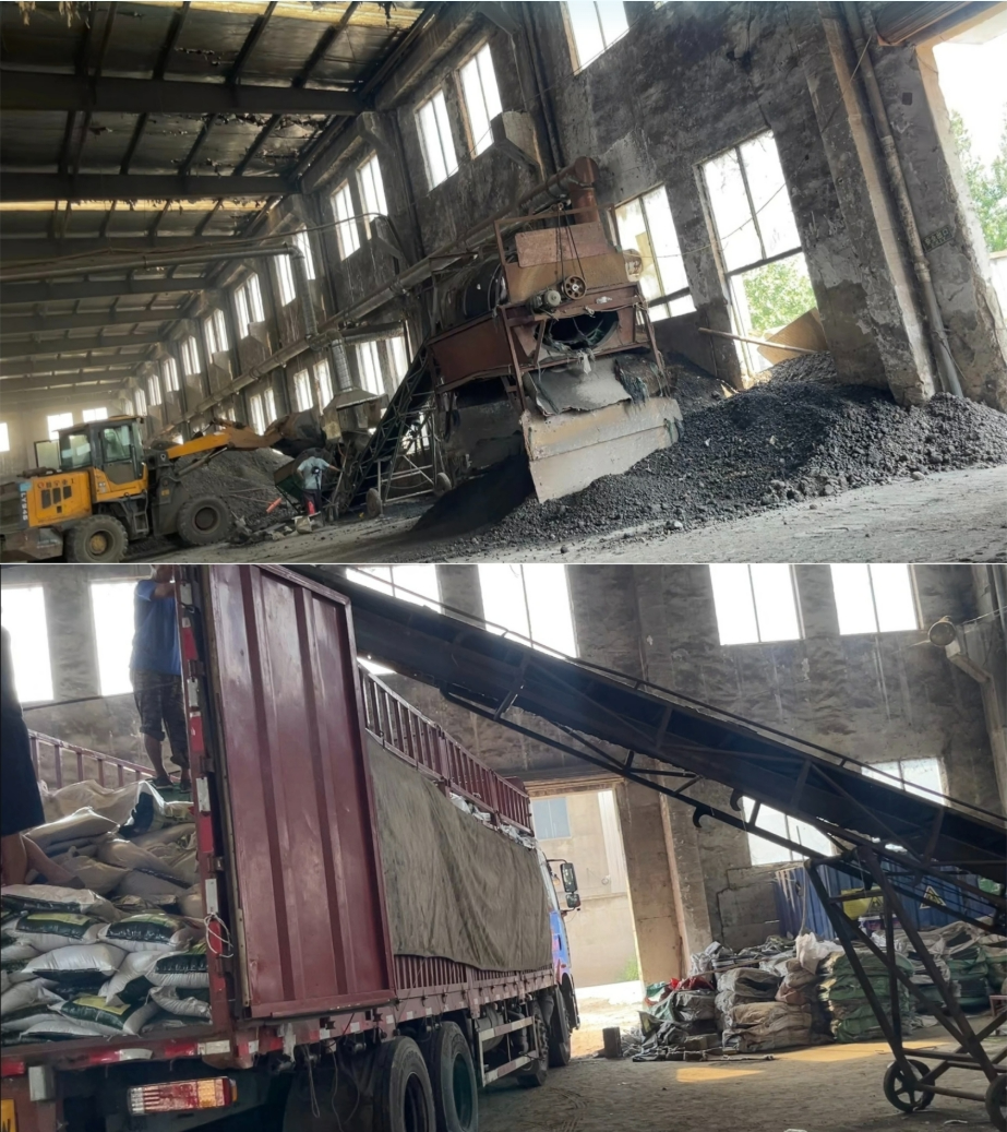 淮安沃隆农业科技有限公司厂房内,过筛原料后打包发货。