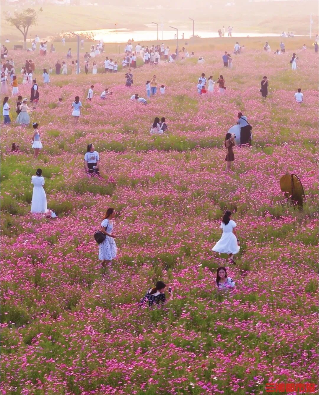 秋日限定的花海绝对惊艳,波斯菊铺成金色海洋,格桑花随风摇曳。步道平坦、视野开阔,边走边聊,在花香和秋风中放松身心。