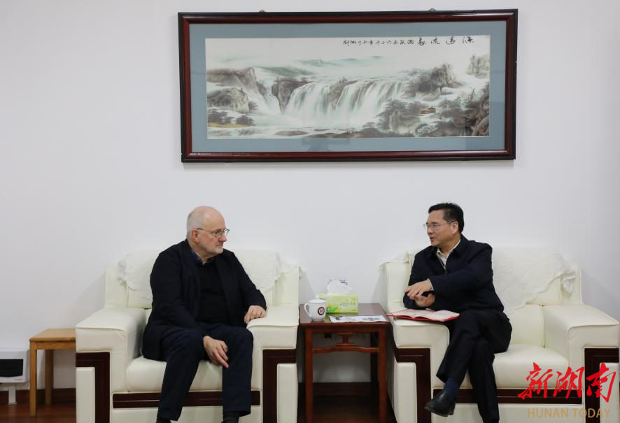 湖南日报·新湖南客户端10月31日讯(通讯员 张淦 何李佳)10月30日,湘潭大学校长廖永安会见英国国家学术院院士、约克大学教授保罗·柯斯威尔,双方围绕中非研究与学术合作进行了广泛交流。廖永安代表学校向保罗·柯斯威尔颁发“湘潭大学中非研究院学术委员会顾问”聘书,期待他为学校中非研究平台建设与国际合作提供专业指导。湘大中非研究院相关负责人及外国语学院相关人员参加会谈。