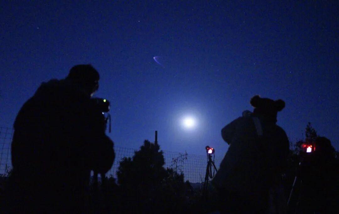 10月31日23时55分,神舟二十一号飞船过境北京,在月亮上方掠过,众多航天与摄影爱好者在北京各地拍下这一刻。