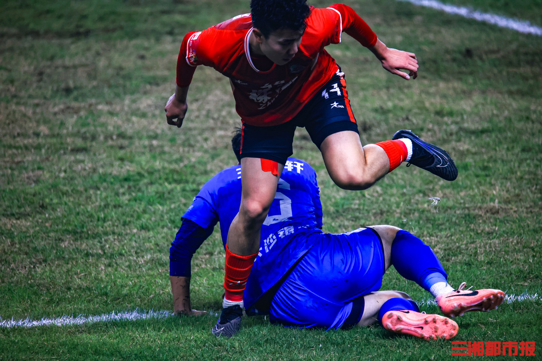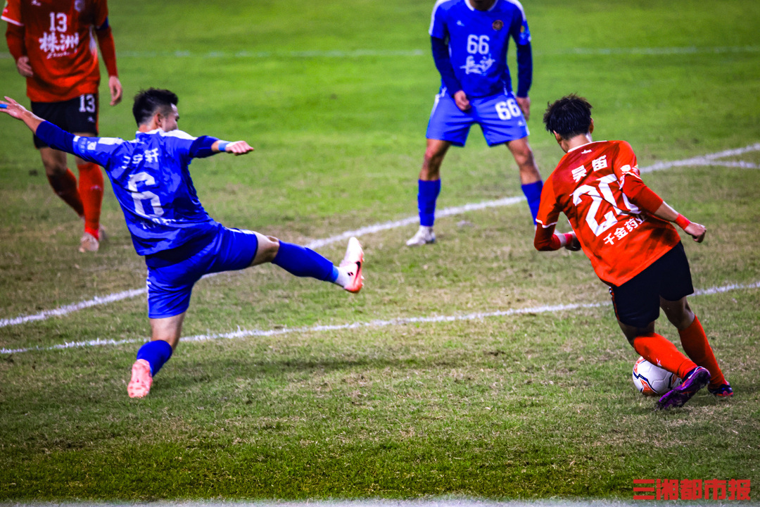 11月1日,2025湘超比赛现场,株洲队大战长沙队。两队攻防激烈,现场火爆。(刘丰 叶竹 陈普庄 杨洁规 摄)