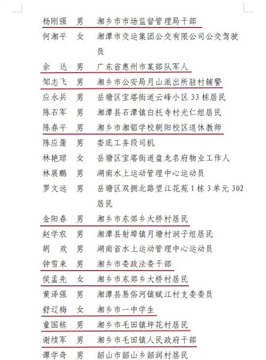 见义勇为先进个人名单公布