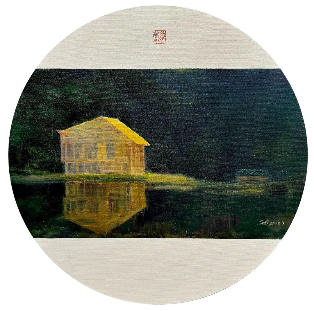 这份近乎执拗的钻研探索精神,同样流淌在郭翔生的画布之上,使他的绘画不拘一格:通透挥洒的铺陈与厚重堆叠的肌理交织并置;色彩时而丰富沉稳,时而单纯响亮,折射出他在古典与现代之间游移的审美趣味。他深爱油画,亦痴迷国画,二者滋养,使他的创作超越了简单的东西方融合尝试,更展现出一种“法无定法”、心手相应的自由境界。