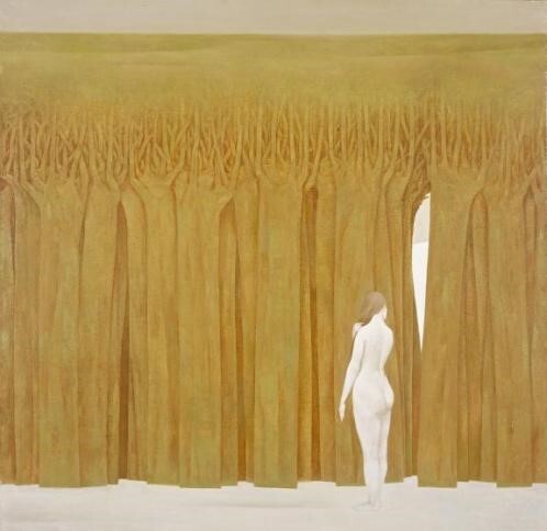 早期抽象画的“留白”,与中期密集茂盛的细节形成对比:前者邀请观众参与意义建构,后者通过繁茂笔触引导沉浸式体验。这种变化可能对应画家从“表达自我”到“构建心灵栖息地”的需求转变。