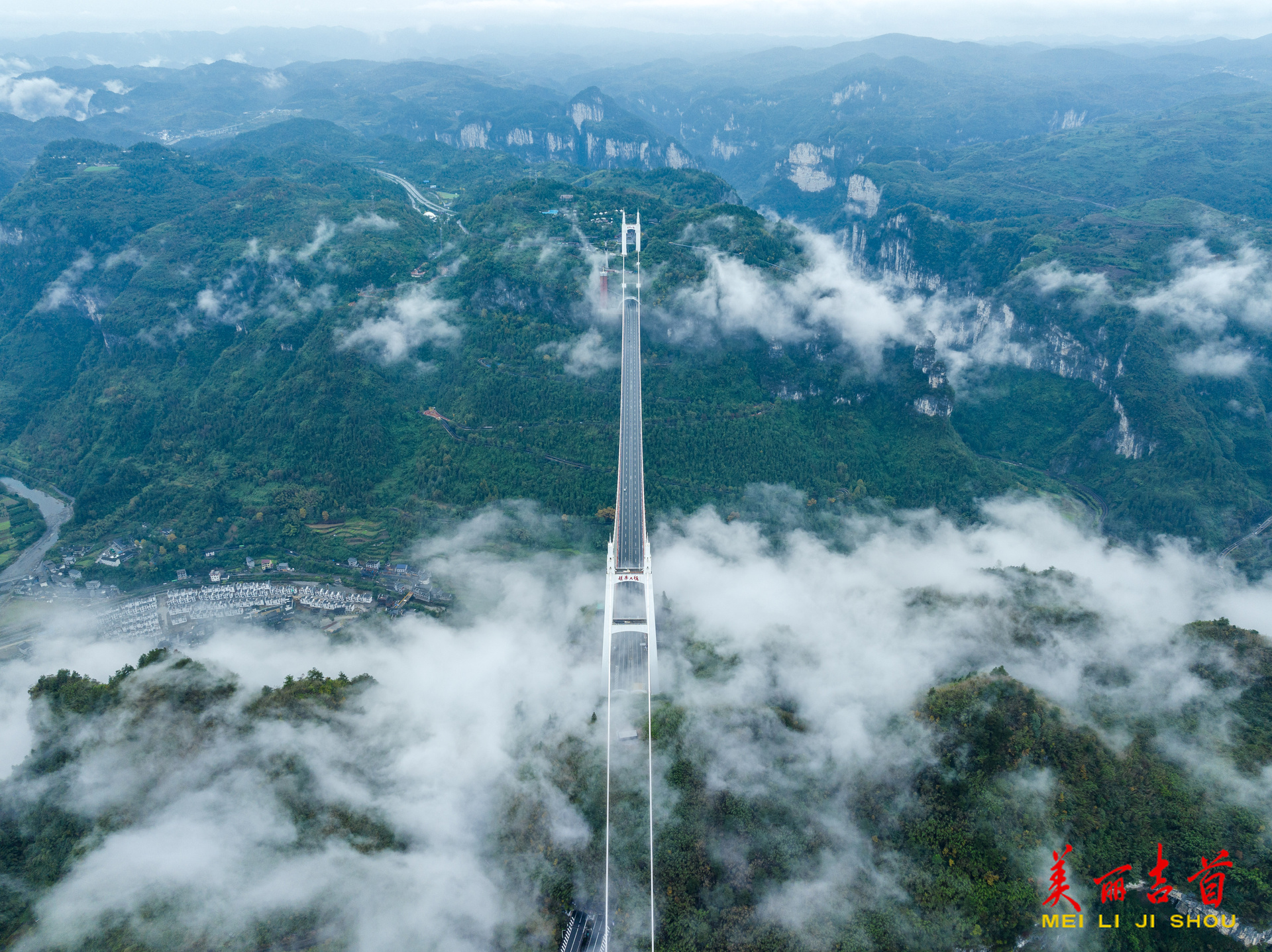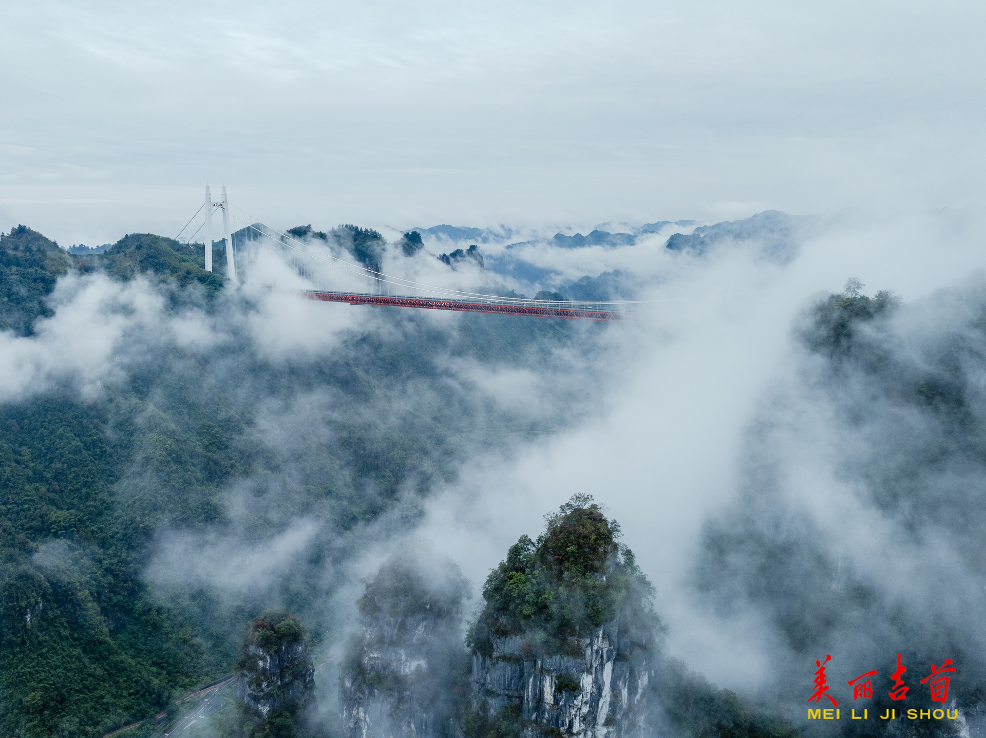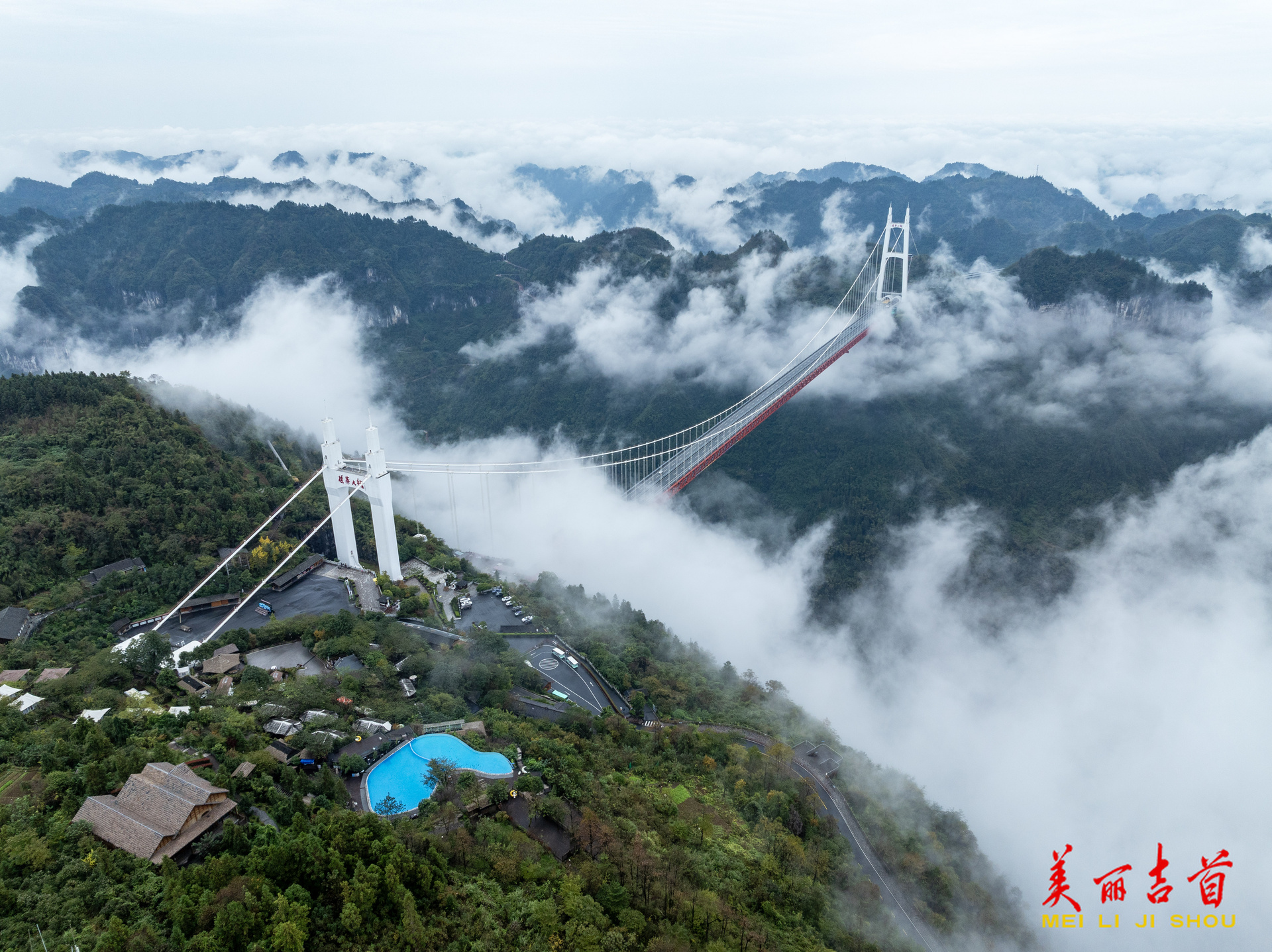 11月2日,吉首市矮寨大桥附近雨后云海翻腾,大桥、峡谷、峰峦在云雾中时隐时现,宛如仙境,构成了一幅雄伟壮阔的自然画卷。