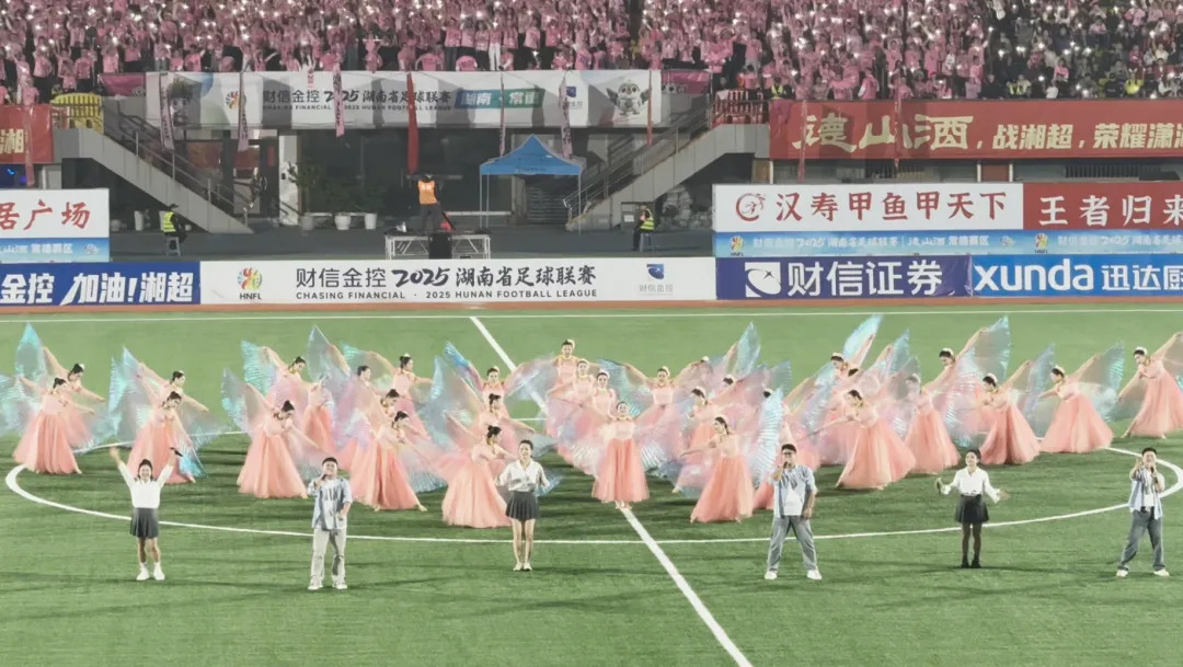 当湘超联赛的聚光灯照亮赛场,汉寿元素迎来高光时刻。歌伴舞《我相信》以青春活力点燃全场,非遗表演《龙舟号子》用铿锵韵律诉说千年文脉,生动诠释着“活旅靓城”的深刻内涵。