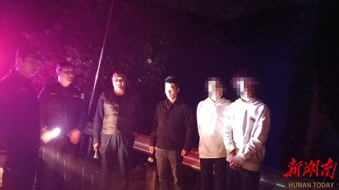 湖南日报·新湖南客户端11月4日讯(通讯员 胡卫红 胡依诺 冯珊)近日,桃江县两名青少年在桃江县浮邱山景区登山时,因地形复杂迷失方向,被困于未开发区域。桃江县公安局高桥派出所接警后迅速行动,联合鸬鹚渡派出所,在雨夜中经过近4小时的地毯式搜索,最终成功将两名被困人员安全救出并护送回家。